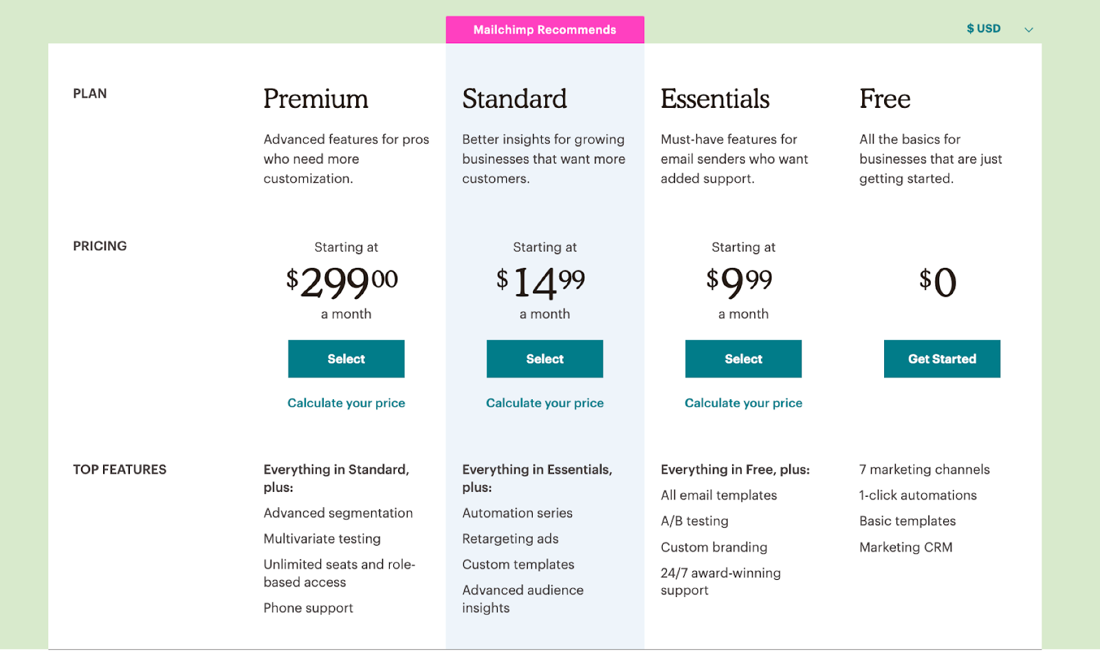 Placeholder for a table to quickly compare packages